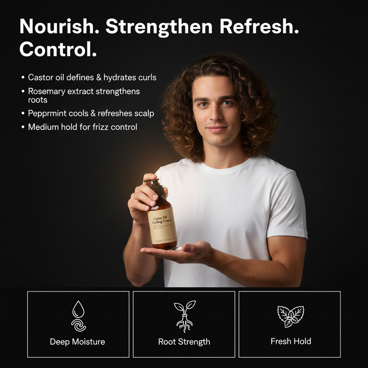 • Nourishing castor oil defines and hydrates curls • Rosemary extract strengthens roots • Peppermint soothes and refreshes scalp • Medium hold for all-day frizz control